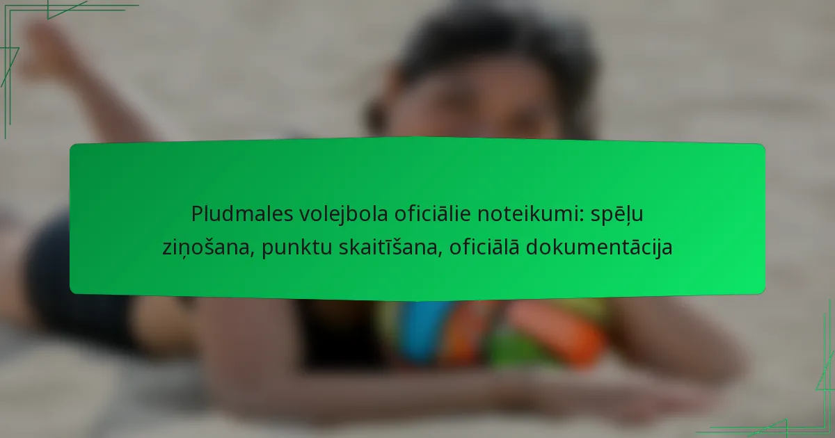 Spēļu ziņošana pludmales volejbolā prasa ievērot konkrētus noteikumus, kas nodrošina precīzu spēles rezultātu un spēlētāju snieguma dokumentāciju. Šie noteikumi aptver nepieciešamo informāciju, ziņošanas formātus, iesniegšanas protokolus un biežākās kļūdas, kuras jāizvairās.